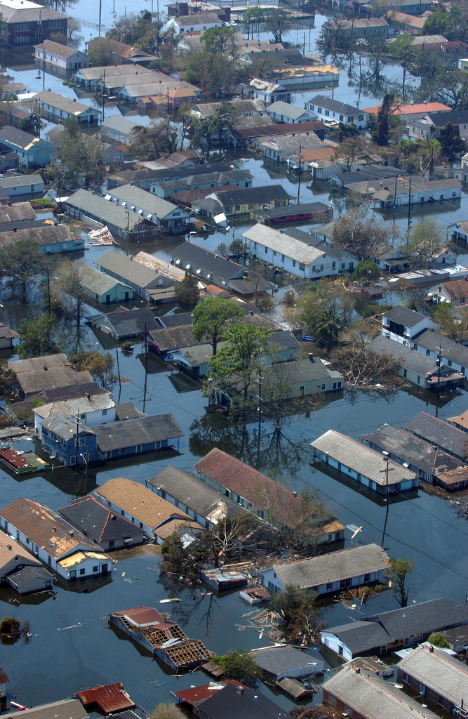 This is what flooding looks like: in 2005 waters from Hurricane Katrina destroyed this New Orleans home. (The U.S. National Archives/ Jocelyn Augustino/ FEMA)
